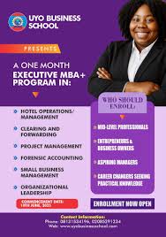 Uyo Business School is a hybrid institution of higher learning with the mandate to train, examine and certify Entrepreneurs and Artisans of all categories for proficiency and cognitive manpower development. It has acquired all the necessary certifications that safeguard her existence and operations as a legitimate Educational Institution that has its business premises in Uyo the Akwa Ibom State capital. Currently, the school is an accredited body for the training and examination of COMPUTER MARSHAL candidates for the award of CMA+ degree.